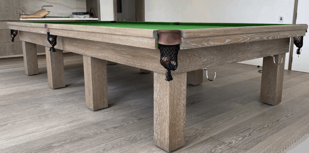 Many Alcocks Contemporary billiard table designs can be made to order as full size tables (slate size 12ft x 6ft 1½ in). With a full size billiard table, virtually all parts can be separated from each other, a very important feature should you decide to move it. All full size tables come to you delivered and fully installed and are provided with a comprehensive set of accessories. Some recent examples are shown.